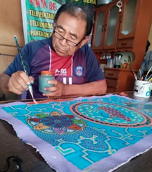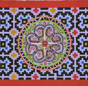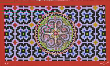 Benito Romaina Arevalo is a self-taught artist from San Francisco de Yarinacocha en Pucallpa Perú. Part of the Shipibo-Konibo indigenous community, he has brought his many years of exploration and learning onto his rich Kené inspired artworks. His style is both precise and fluid, representing sacred- geometry and all of nature, each piece is deeply symbolic and designed to resonate with personal meaning. Colors, patterns and sacred vines unite harmoniously as we embark on the visual journey of Benito.