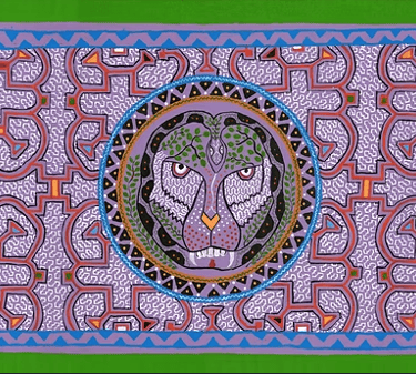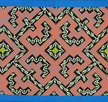 The intricate and intertwined Kené patterns travel continuously around the spiral. Ancient to the Shipibo People, the story of these complex Kené patterns go back through all time and are from cosmic communication and vibrational healing.