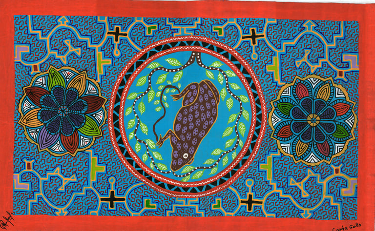 El Sapo de la Selva, also known as the healing toad, is a symbol of traditional Shipibo art. This special toad has its skin and a little gum on its body, which gives it unique healing properties. The toad is adorned with various colors of Shipibo Conibo designs, making it a beautiful piece of art to add to your collection. Its intricate design and cultural significance make it a must-have for any lover of indigenous art. Add El Sapo de la Selva to your collection today and experience the healing power of this sacred toad.